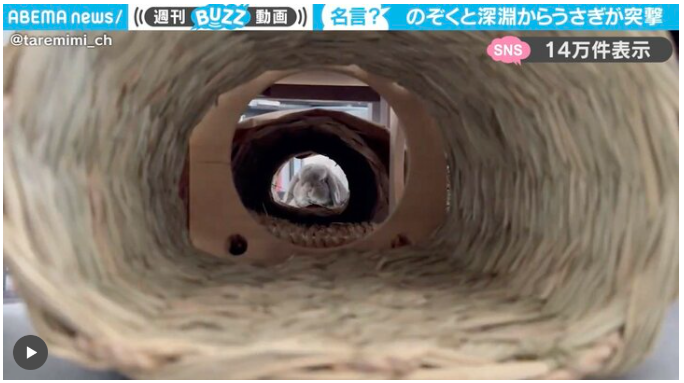 「もふもふが襲ってくる…」深淵から突撃してくるウサギに「ありがたい!」「疲れた時は深淵をのぞくことに... ウサギが“深淵”から突撃してくる動画に、SNSでは話題を集めている。                   話題を集めているのは、哲学者ニーチェの名言「深淵をのぞくと...